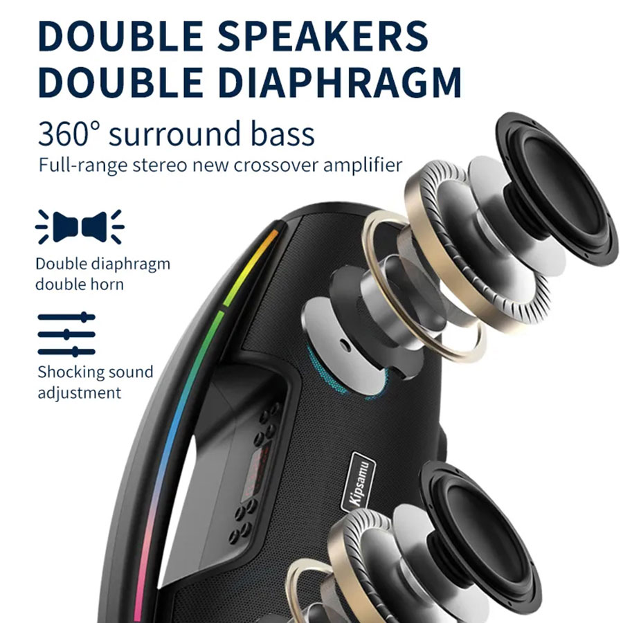 】실외용 붐박스 스피커는 높은 볼륨에서도 왜곡이 없는 거대한 스테레오 사운드로 뛰어난 경험을 제공합니다.