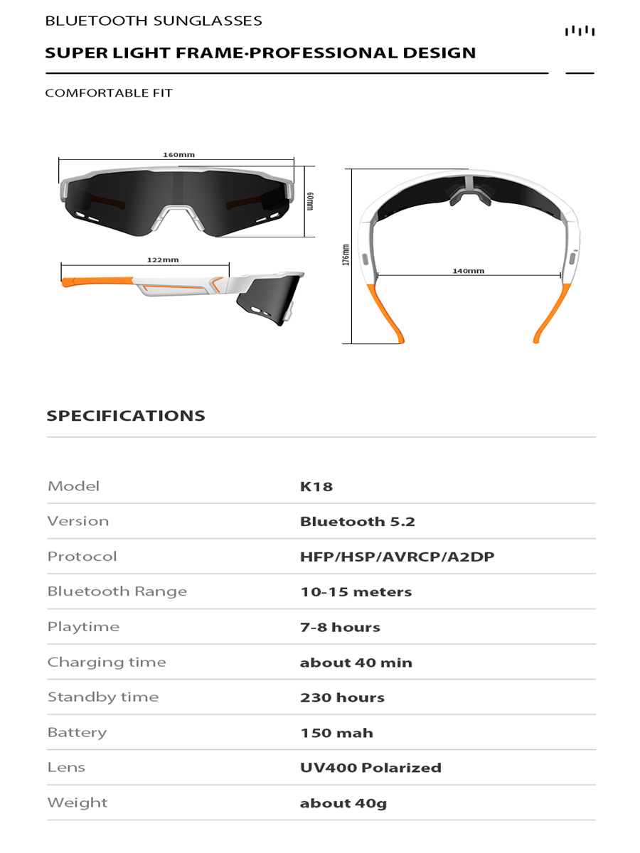 【스포츠 선글라스에 내장된 고급 오디오】오픈이어 오디오 디자인으로 음악과 환경을 동시에 들을 수 있습니다. 특별히 설계된 스피커는 자전거를 탈 때 돌진하는 바람을 들을 수 있을 만큼 크고 깊게 재생합니다.
